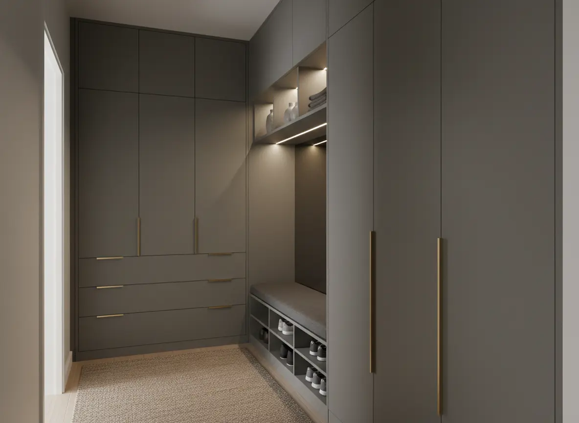Nos aménagements sur mesure permettent d’intégrer bancs, crochets, penderies, tiroirs et espaces de rangement fermés afin de garder chaussures, manteaux et accessoires bien organisés. Que vous disposiez d’une petite entrée ou d’un vestibule spacieux, nous maximisons chaque pouce disponible.
