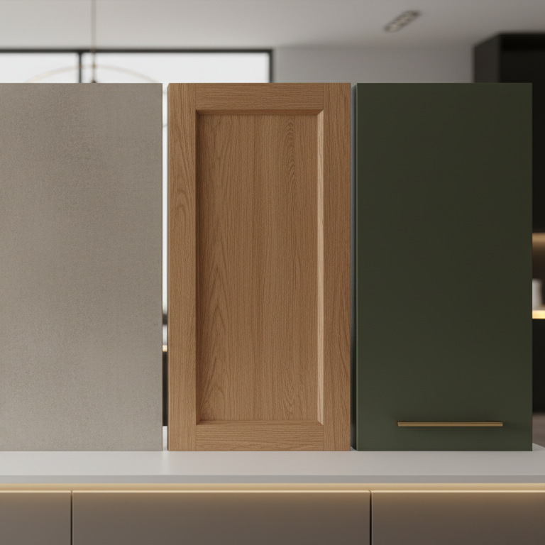 - Matériaux pour armoires : mélamine, polyester, polymère, thermoplastique, capage de bois, stratifié.